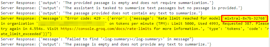 For added context, the text sent to the summarizer is capped at 500 characters. Eventually, I landed on this super useful error message.