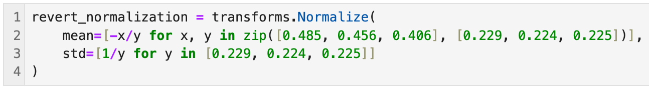 To unnormalize we need the following snippet of code: