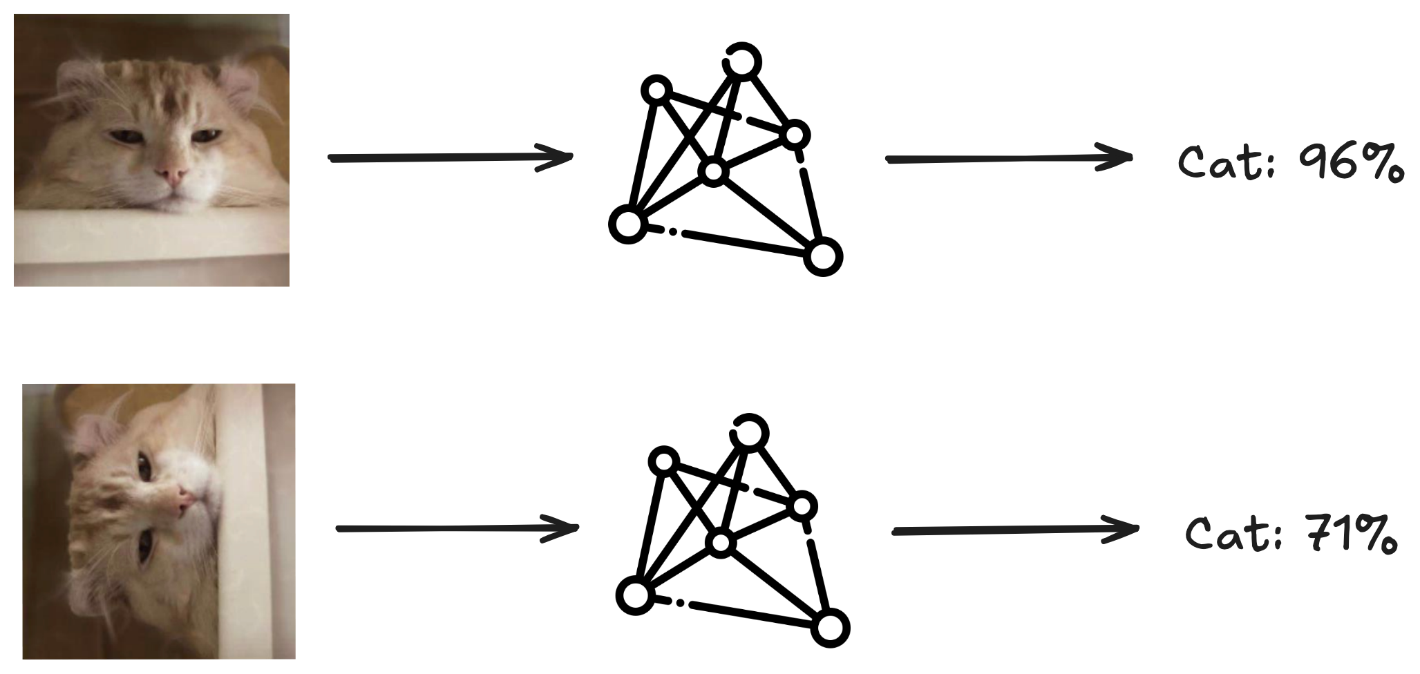 Why would this ever happen? Well, if you have a trained model it's not hard to find weird variations of the data that cause the model to misbehave. If the model isn’t effectively adapted to handle things that we as humans intuitively process: rotations, color changes, subtle nuances in the image, or even the image age. Each of these presents potential avenues for manipulation leading to misclassification.