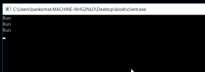 Loading the VM and we're presented with the following. Every 5 seconds there is a new "Run" that appears in the terminal. No idea what it does and the client.exe isn't written in C# so I'm not going to spend any time reversing it. It's probably cpp and id rather die than reverse c++.