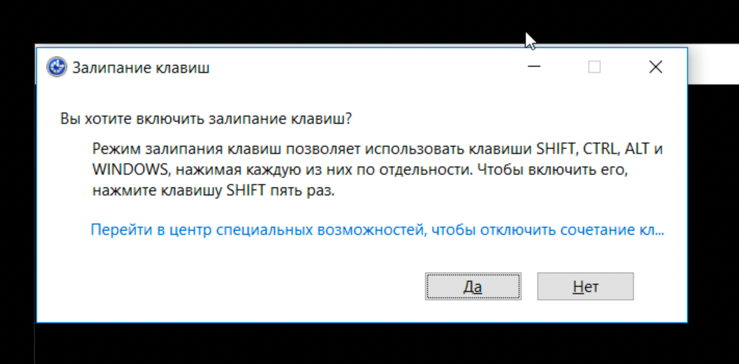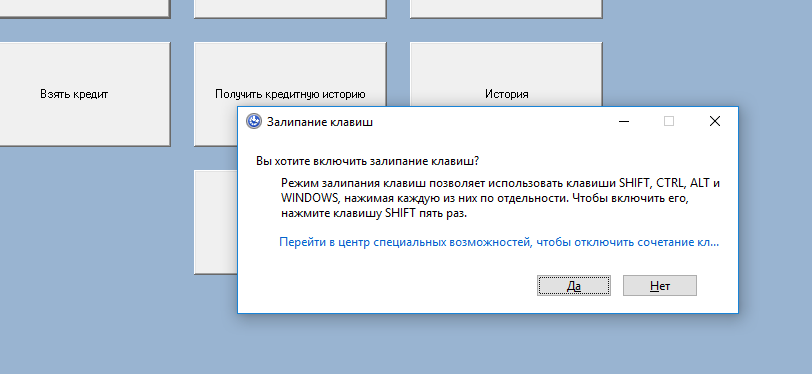 The translation is "Do you want to enable Sticky Keys? Sticky Keys allows you to use the SHIFT, CTRL, ALT, and WINDOWS keys by pressing each one individually. To turn it on, press the SHIFT key five times." and when we click on the hyperlink we aren't redirected. The kiosk still takes precedence over the screen.
