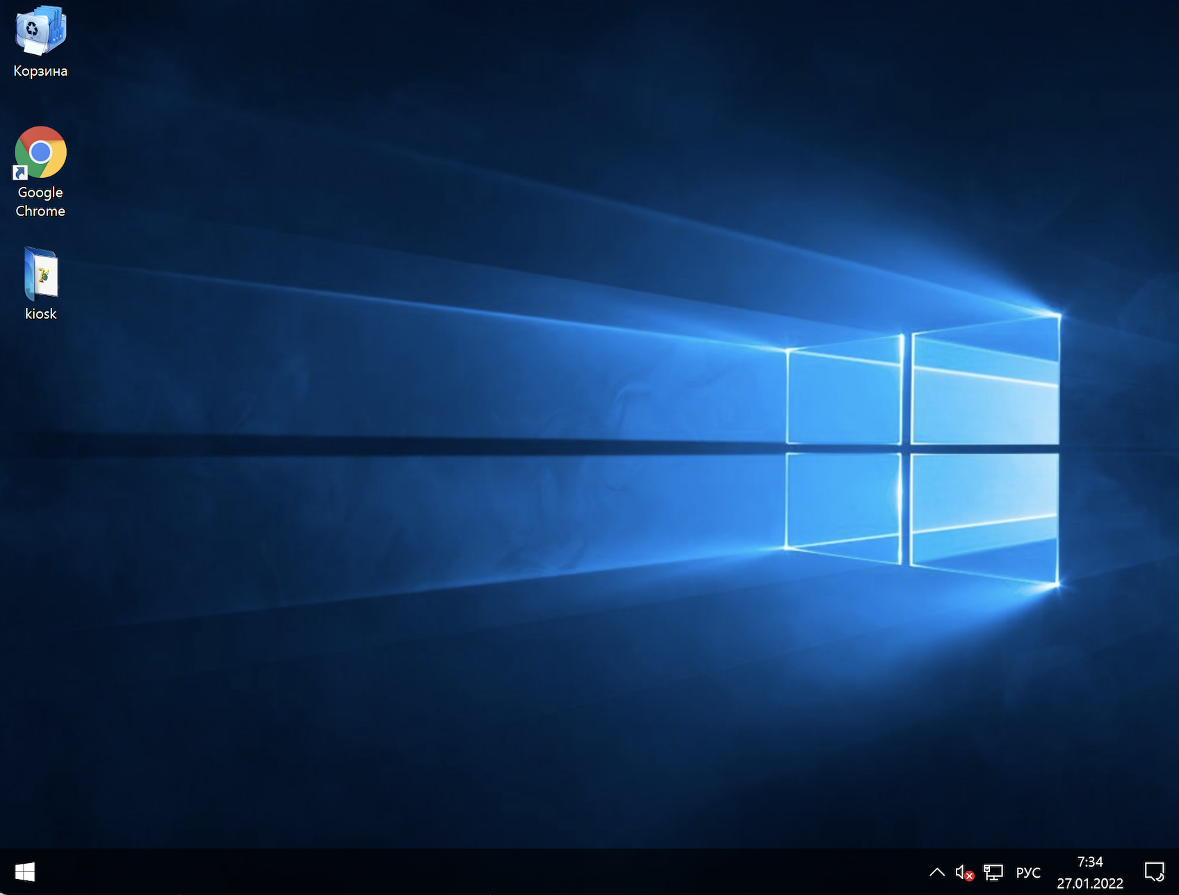 So we'll go ahead and connect to the system, once again we don't have much. When it boots a few interesting things happen. There's about a 1-second window where the desktop is visible and a half a second window where the kiosk spawns but the taskbar remains visible. Few souls are fast enough to click and do anything worth doing in that small period of time.