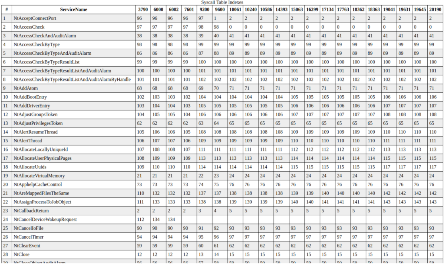 Among them, NtAllocateVirtualMemory needs to consider the version differences of different operating systems. Refer to the following: