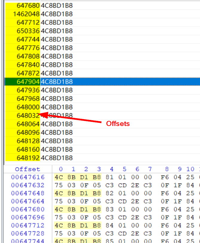 Also - in green are the bytes, that I refer to as syscall stub for NtCreateProcess and these are the bytes that we want to be able to retrieve at run-time for any given NT function, and hence this lab. As we'll see utilizing an arbitrary read primitive, it is possible to extract the base of the page table entries utilizing this technique. With the base of the PTEs in hand, the aforementioned trivial calculation primitive remains valid