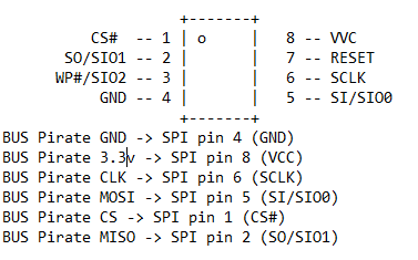 Now plug in the BusPirate to your laptop but don't connect the Yo's Sperm to any power and follow the same steps as above.
