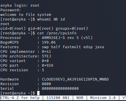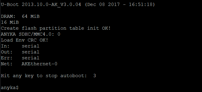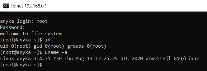 And as seen below we have a login prompt for an anyka user.