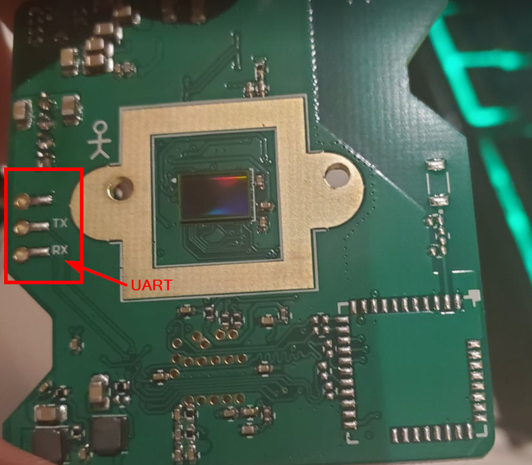 Unfortunately, as seen in the previous picture, we may have identified a potential UART interface, but the connections are not clearly labeled. We know RX, TX but we don't know VCC or GND. But we can be identified using our multimeter!