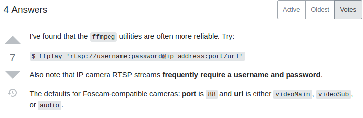 I actually did some googling on RTSP because I wasn't sure how to connect to it. There is another way we can connect to it using a command line tool called ffplay. Let's try it perhaps it's just VLC that's bugging out?
