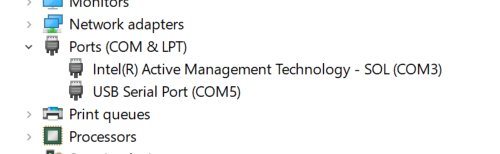 I had to solder the 3 pinouts and after fixing a cold solder joint we got a proper connection. To connect, open up the device manager and notice that we have a new serial device connected.