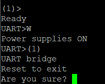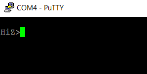 You'll see that our "interface" changes from HiZ> to UART> so we'll set the power supply to ON using the command line, this is done by pressing W.