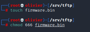 So we'll go ahead and create a file entitled firmware.bin because as discussed earlier TFTP cant create it.