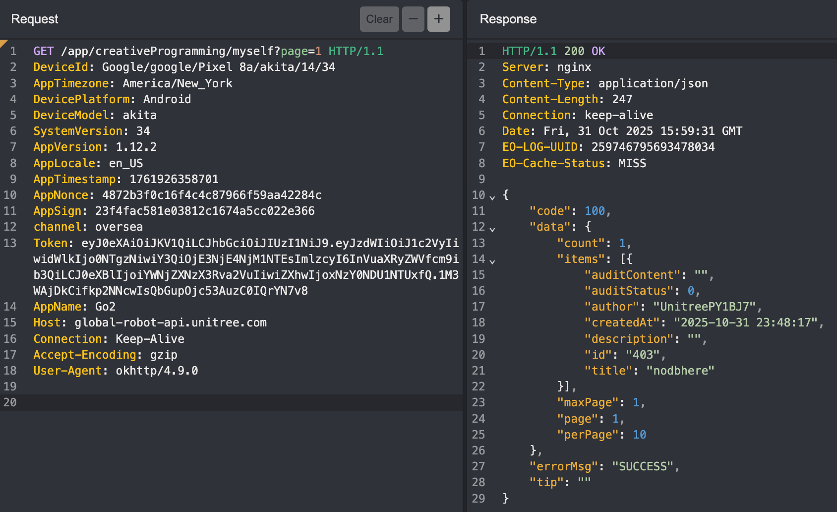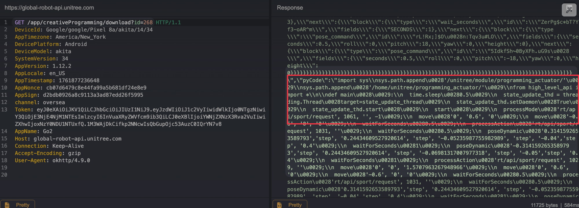 Unitree is running a Tencent Cloud EdgeOne WAF, so you can catch a 566 if you aren't careful.
