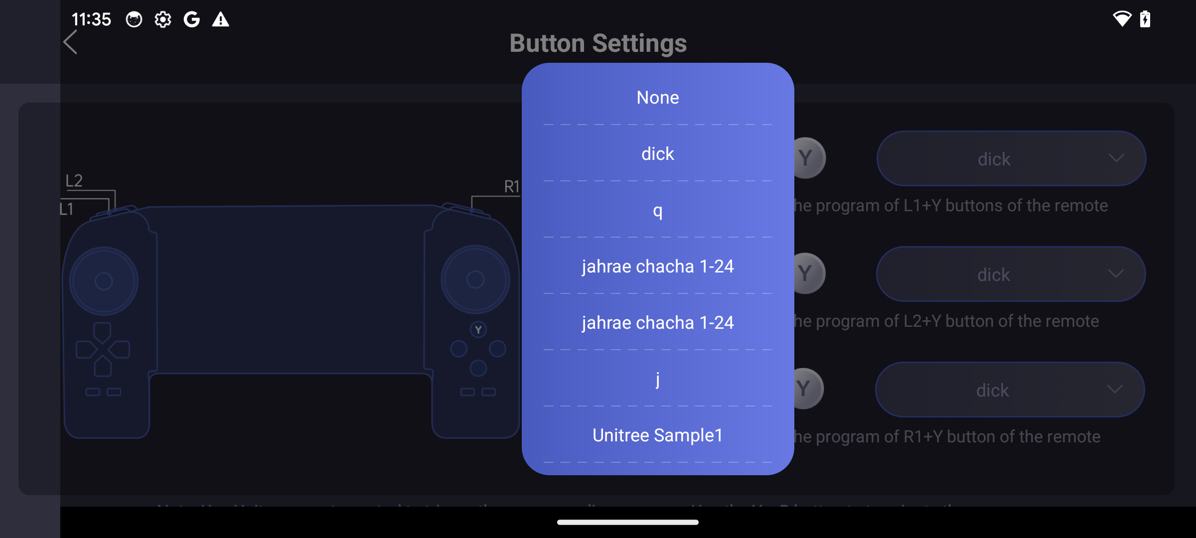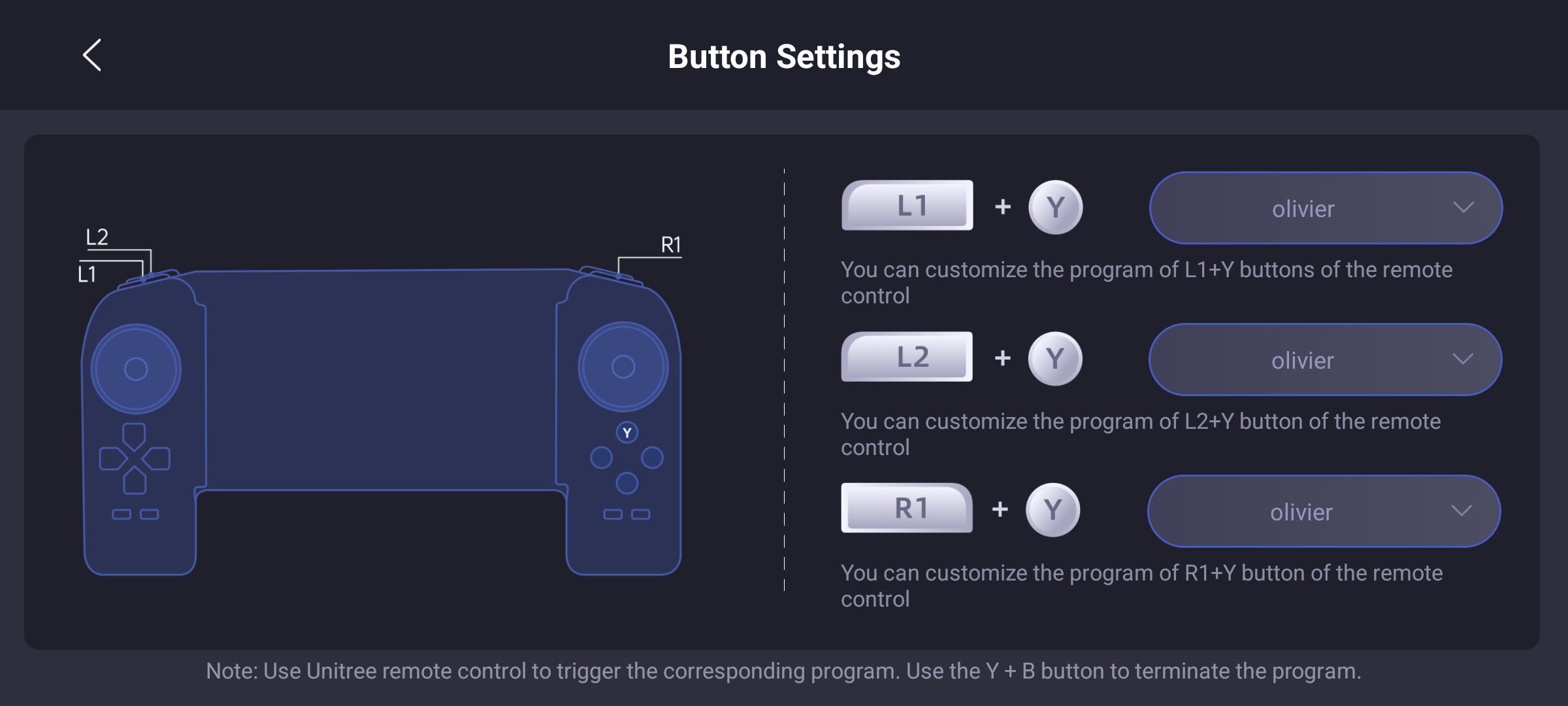 The olivier program contains our malicious Python. In the app, we map it to controller keybinds as seen below.